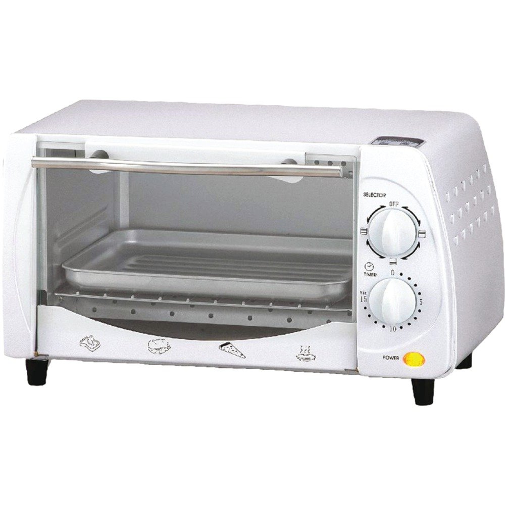 Housing & front panel & glass holders; Stainless steel straight handle, black knob & foot ; 3-pin polarized ; 150deg F-450deg F temperature control ; 15-min timer with stay-on ; 2-piece quartz heating element ; Zinc-coated chamber ; Includes food tray & wire rack; 700W; Approval Code: cETL; White;