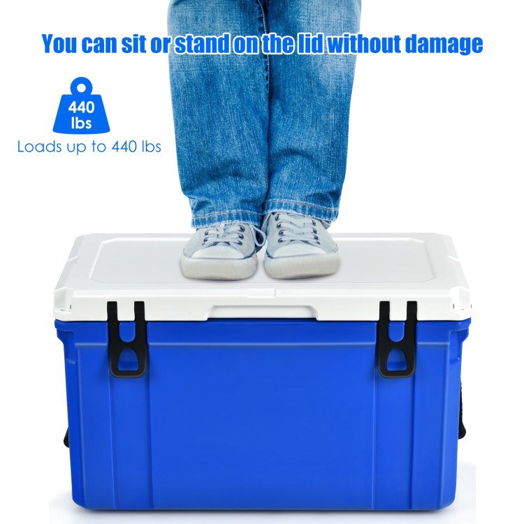 This beverage cooler features a commercial-grade insulation wall with enhanced thickness providing a tight seal to keep the cold inside for 4 days. With dual latches; this ice chest prevents the potential invasion of wildlife and leaking.